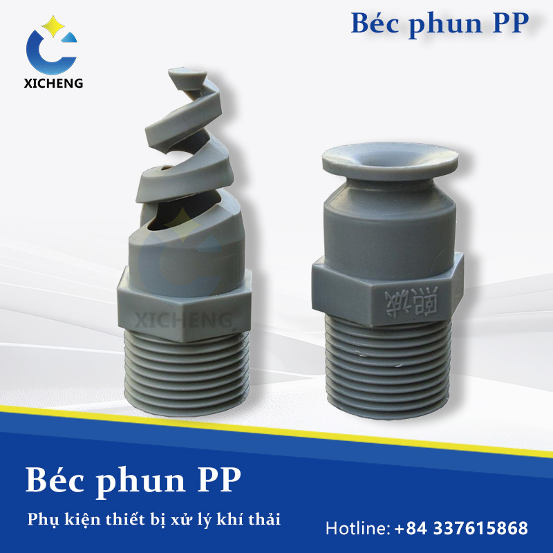 Chức năng: Vòi phun của máy lọc khí ướt được thiết kế để tạo ra những giọt chất lỏng làm sạch mịn (thường là nước) và phân tán chúng đều khắp dòng khí trong hệ thống máy lọc khí ướt. Chất lỏng cọ rửa thu giữ và loại bỏ các chất gây ô nhiễm, chẳng hạn như hạt vật chất, khí hoặc các hợp chất có mùi khỏi dòng khí.